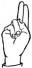 На ћирилици написано БОГИЊА РАДОШ састоји се из 11 слова [?]. Исписано ћириличном једноручном азбуком за глувонеме: